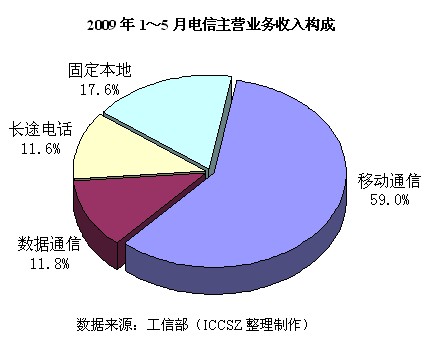 增長10.5%,占主營業(yè)務(wù)收入的比例為59.0%;固定本地電話網(wǎng)業(yè)務(wù)收入590.3億元,比上年同期下降14.0%,占主營業(yè)務(wù)收入的比例為17.6%。數(shù)據(jù)表明,在移動(dòng)電話用戶不斷