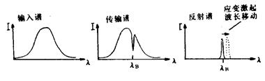 當(dāng)寬帶光在光纖布拉格光柵中傳輸時(shí),產(chǎn)生模式耦合,滿足布拉格條件的光被反射,其中,A為布拉格波長,即后向反射波長; 為光纖模式的有效折射率; 為光柵周期。這樣用不同周期的相位版就可以制作出不同共振波長的光纖光柵,以滿足實(shí)際需要。