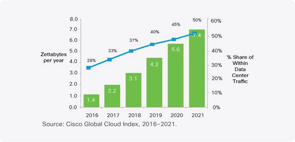 數(shù)據(jù)中心管理的改善和數(shù)據(jù)控制大幅降低了企業(yè)風(fēng)險,且能更好地保護消費者信息,克服云部署過程中的多個關(guān)隘。在2021年,思科預(yù)測94%的工作和計算任務(wù)會通過云數(shù)據(jù)中心進行處理。