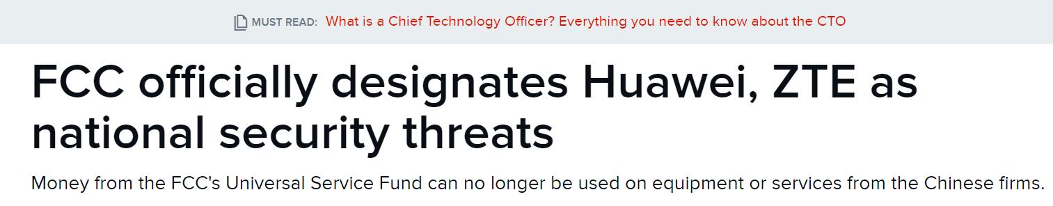 當(dāng)時(shí),華為和中興通訊被“最初指定為”安全威脅,但是在接下來(lái)的幾個(gè)月中已經(jīng)正式確定了他們的身份,從而形成了今天的聲明。