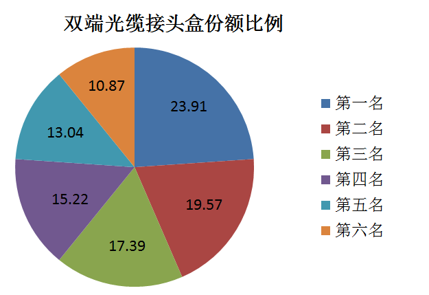 雙端光纜接頭盒需求為114.7萬套,中標人數(shù)量為6個,對應(yīng)分配份額:第1名:23.91%、第2名:19.57%、第3名:17.39%、第4名:15.22%、第5名:13.04%、第6名:10.87%。2016年中國移動雙端光纜接頭盒集采共有4家中標企業(yè)上榜,分別是浙江超前(32.26%)、中天科技(25.81%)、寧波余大(22.58%)和無錫東旭(19.35%)。