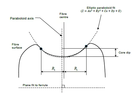 ① 曲率半徑R(Radius of Curvature):描述插芯軸線到端面的半徑。也可以描述為:插芯端面曲線的半徑,連接器通過彈簧的壓力來達(dá)到光纖端面的緊貼, 曲率半徑是控制壓縮力來保持光纖中心匹配力。曲率半徑的不合格將增大或減小光纖的壓強(qiáng),在時(shí)效作用下最終會(huì)導(dǎo)致光纖中心匹配的間距,甚至損害光纖端面。