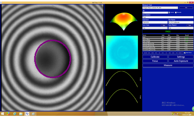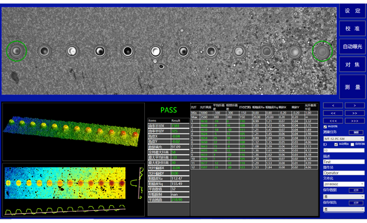 MT Pro干涉儀測量軟件界面采用簡潔的模塊化顯示,直觀便于 操作。實(shí)時(shí)圖像清晰,3D 還原圖,表面粗糙度圖、剖線圖,及各個(gè)參數(shù)測量結(jié)果同相關(guān)信息一目了然。測試操作和設(shè)置簡單易行,單多芯測量一鍵切換。