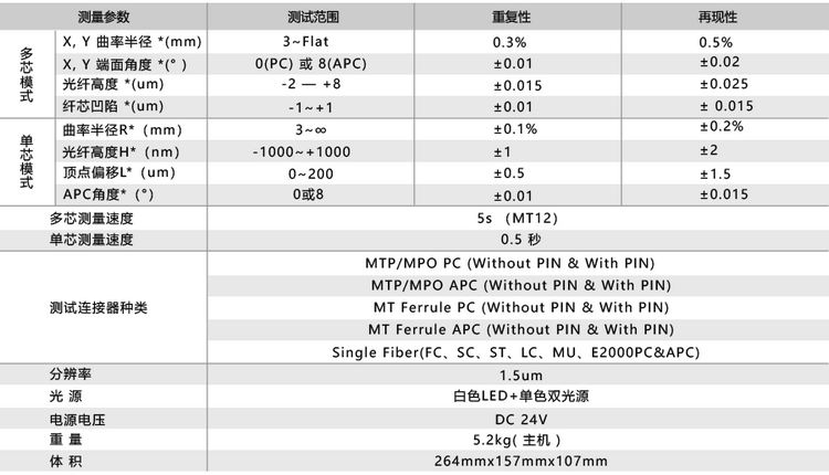 光纖端面3D參數(shù)指標(biāo)