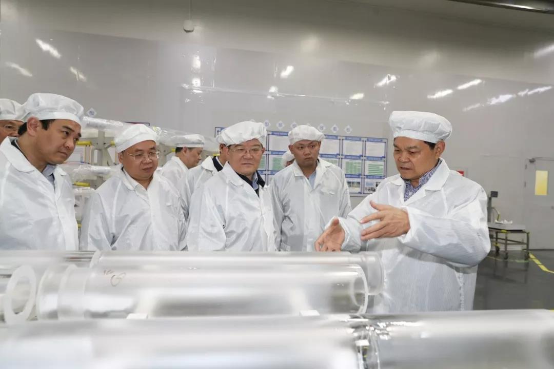 在亨通集團(tuán)光纖光棒智能制造車間,徐樂江一行詳細(xì)聽取了亨通集團(tuán)董事局主席崔根良關(guān)于亨通光棒和光纖的制造技術(shù)、工藝與裝備、生產(chǎn)流程、產(chǎn)品產(chǎn)能等情況的介紹。徐樂江對亨通集團(tuán)的國際化戰(zhàn)略、智能制造水平、產(chǎn)品創(chuàng)新研發(fā)能力表示贊賞,鼓勵(lì)集團(tuán)要繼續(xù)堅(jiān)持國際化的發(fā)展戰(zhàn)略,不斷提升自主創(chuàng)新能力和智能制造水平,增強(qiáng)國際競爭優(yōu)勢,在全球市場競爭中贏得更大主動(dòng)。
