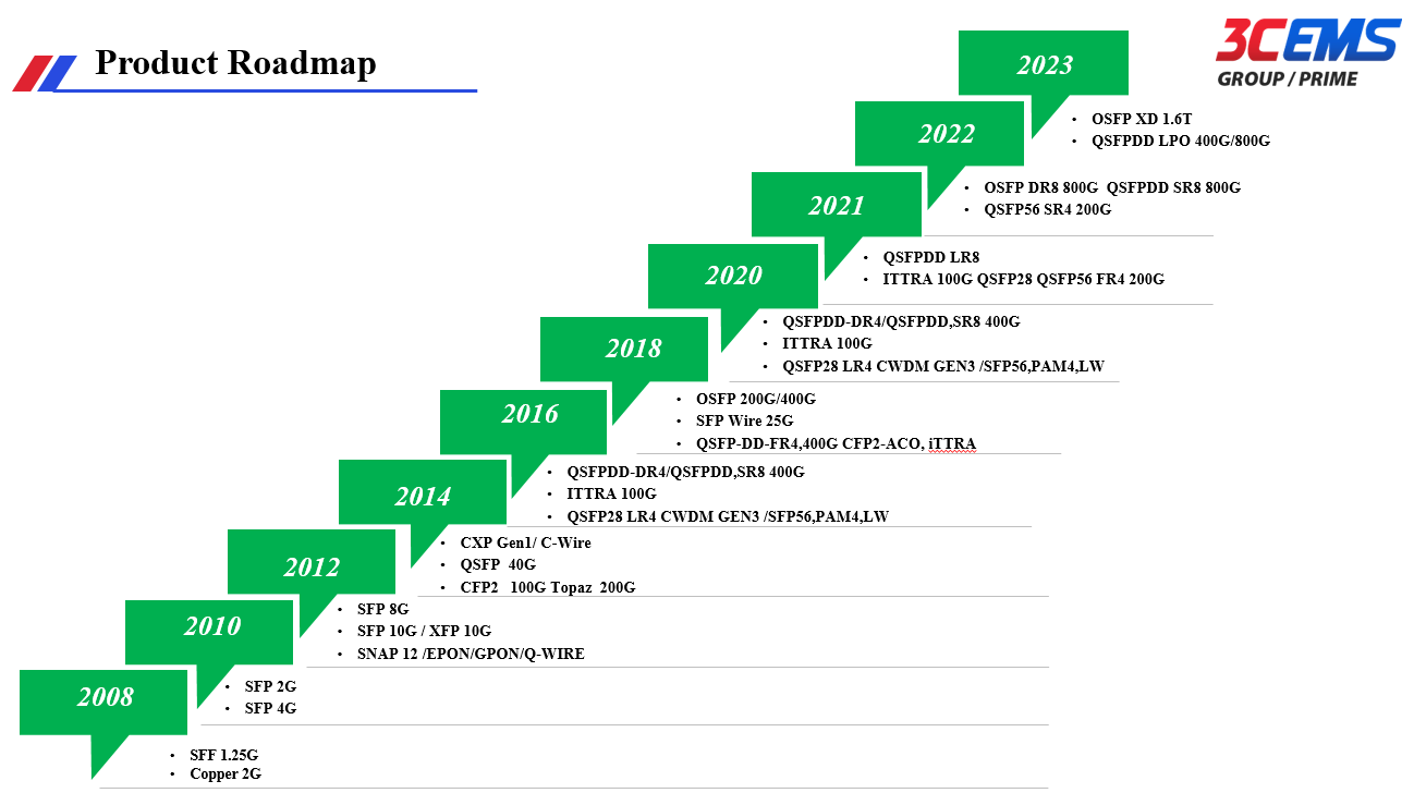 其中光模塊代工超過15年經(jīng)驗,是國內(nèi)較早接觸光模塊行業(yè)的廠家之一,相關(guān)技術(shù)實力雄厚。已批量生產(chǎn)100G--800G 光模塊,以及1.6T光模塊多型號試產(chǎn)。