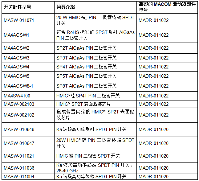 * 新型MADR-011020和MADR-011022驅動器,支持超快開關速度