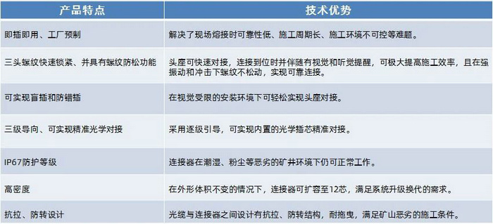 在應用場景上,礦用光纖連接器主要應用于煤礦安全監(jiān)控系統(tǒng),配接具有煤安認證的礦用光纜,以實現(xiàn)礦井下監(jiān)控設備與地面監(jiān)控中心之間的信號互聯(lián)。