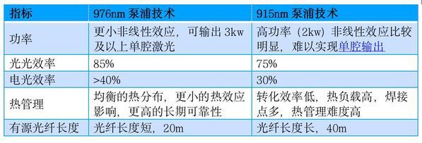 另外,976nm泵浦技術應用難度更大,目前全球范圍內(nèi)也只有IPG、Rofin Coherent等少數(shù)巨頭首先突破并實現(xiàn)976nm泵浦技術工業(yè)化規(guī)模生產(chǎn)制造。