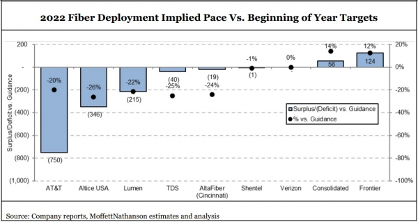但AT&T并不是唯一一家,Lumen也落后于其目標(biāo),TDS、altafber和Altice USA也是如此。不過(guò),F(xiàn)rontier Communications、Consolidated Communications和Verizon等公司仍處于正常的部署節(jié)奏中。