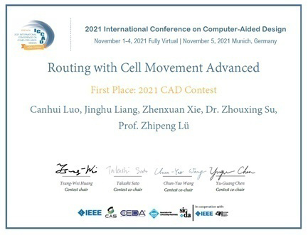 ICC訊 11 月 9 日消息,據(jù)人民日報報道,在 11 月 4 日結(jié)束的 EDA(電子設計自動化)領域的國際會議 ICCAD 2021(計算機輔助設計國際會議)上,華中科技大學計算機學院呂志鵬教授團隊獲得了 CAD Contest 布局布線(Routing with Cell Movement Advanced)算法競賽的第一名。團隊成員還包括蘇宙行博士、研究生羅燦輝、梁鏡湖和謝振軒。