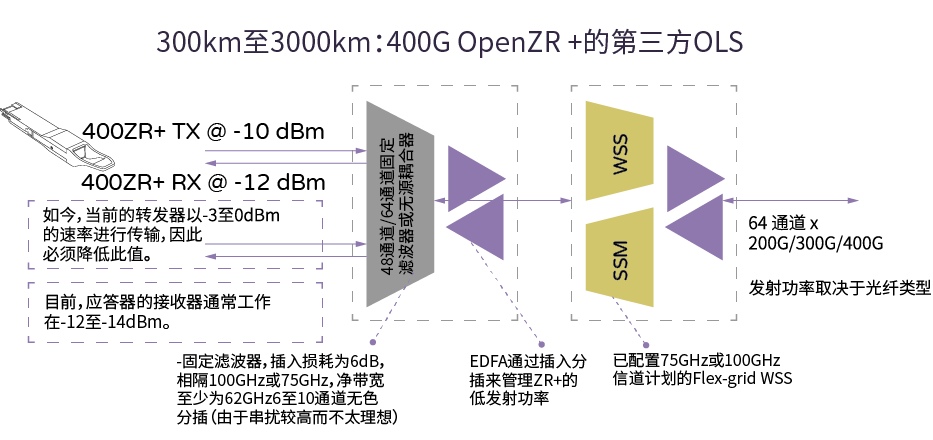 下圖總結(jié)了400G OpenZR+的典型線路系統(tǒng)布局。