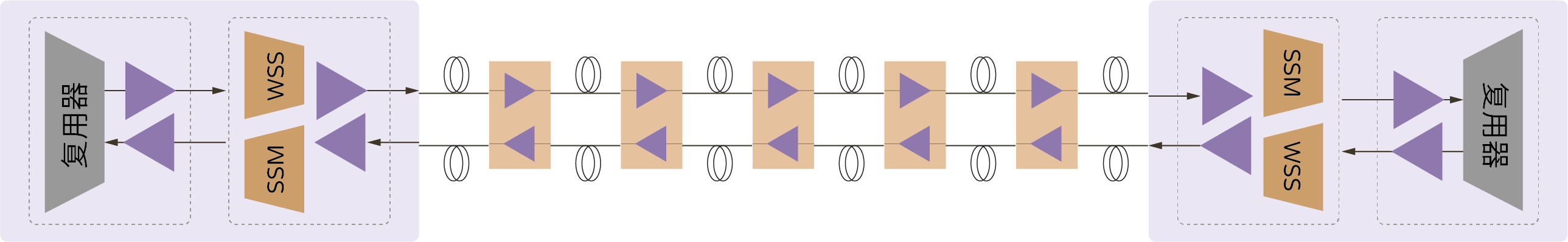 在長距離傳輸應(yīng)用中,大多數(shù)線路系統(tǒng)都使用可重新配置的光分插復(fù)用器(Flex-grid ROADM)以Nx6.25GHz的增量實(shí)現(xiàn)信道規(guī)劃的靈活性,并采用EDFA和反向傳播拉曼放大器的混合配置來最大化鏈路的OSNR。