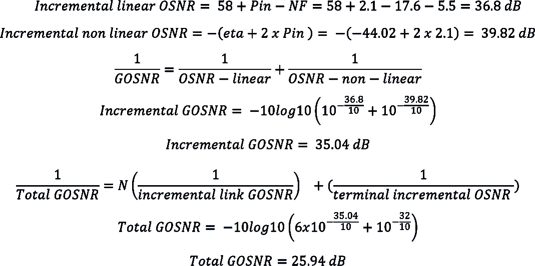 整個(gè)鏈路的OSNR計(jì)算方式如下: