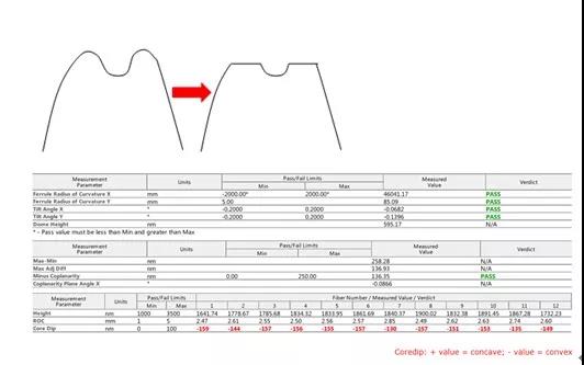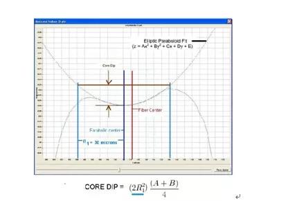 3) Core Dip指標(biāo)的測(cè)量:基于IEC 61300-3-30定義如下所示,推薦使用紅光,至少綠光干涉儀,更適合測(cè)量微觀連續(xù)曲面,可以提升測(cè)量的精度,以及重復(fù)性和再現(xiàn)性。