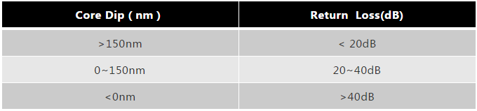 4) Core Dip指標(biāo)與Return Loss回波損耗的對(duì)應(yīng)關(guān)系: