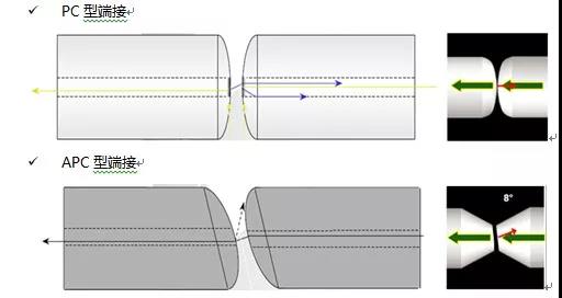 · 因此,我們看到基于PAM4信號(hào)的400G SR8光模塊上,為了解決系統(tǒng)回波損耗隱患的一個(gè)折中方案趨勢(shì),就是由多模MT/PC研磨形式,調(diào)整為多模MT/APC研磨形式,描述如下: