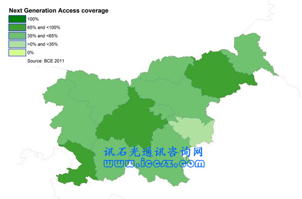 《2011歐洲寬帶覆蓋》調(diào)研報(bào)告顯示,斯洛文尼亞基本寬帶覆蓋率(至少提供144kbps的服務(wù),只要他們?cè)敢猓┻_(dá)90%,超高速寬帶(也稱(chēng)為NGA,即下一代接入)覆蓋達(dá)68%。在調(diào)研的29個(gè)國(guó)家中(歐盟27國(guó)和挪威、冰島),96%能夠獲得基本寬帶,超過(guò)50%(一半國(guó)家走向2020數(shù)字天堂目標(biāo))能夠獲得超高速。