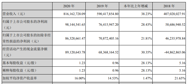 ICC訊 (編輯:Nicole) 河北中瓷電子科技股份有限公司(以下簡稱“中瓷電子”或“公司”)發(fā)布2020年度業(yè)績報告稱:本報告期內(nèi),公司實現(xiàn)營業(yè)收入81,616.27 萬元,較上年同期增長 38.23%;歸屬于上市公司股東的凈利潤9,814.45萬元,較上年同期增長28.43%。