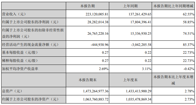 同時,中瓷電子公告稱2021年第一季度實現(xiàn)營業(yè)收入2.2億,同比增長62.6%;歸屬于上市公司股東的凈利潤2828.2萬,同比增長58.8%。