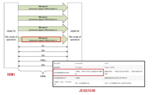 現(xiàn)行的高速串行總線協(xié)議中,通常都在數(shù)據(jù)中包含了時鐘信號,而不再需要一根獨(dú)立的時鐘信號和數(shù)據(jù)并行傳輸,圖 1中能夠看到HDMI和JESD204B和傳統(tǒng)接口的一些區(qū)別,都是將隨路時鐘取消了。為了在接收端能夠正確對數(shù)據(jù)進(jìn)行采樣,需要從嵌入在數(shù)據(jù)中的時鐘信號提取出來,即是時鐘恢復(fù)