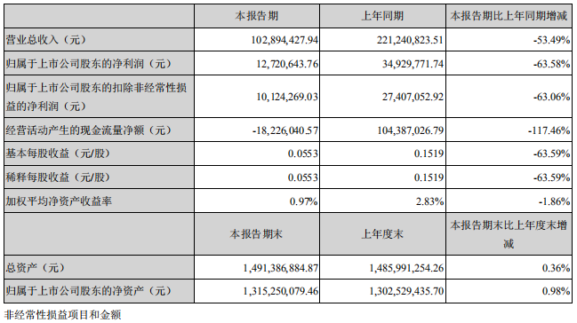 ICC訊(編輯:Debi)4月27日,深圳市太辰光通信股份有限公司(太辰光,300570)發(fā)布2020年第一季度報告,營業(yè)總收入1.02億元,同比減少53.49%;歸屬于上市公司股東的凈利潤1272萬元,同比減少63.58%。公告指出,營業(yè)收入同比下降主要是受新型冠狀病毒肺炎疫情及主要客戶業(yè)務(wù)發(fā)展的正常波動影響所致。