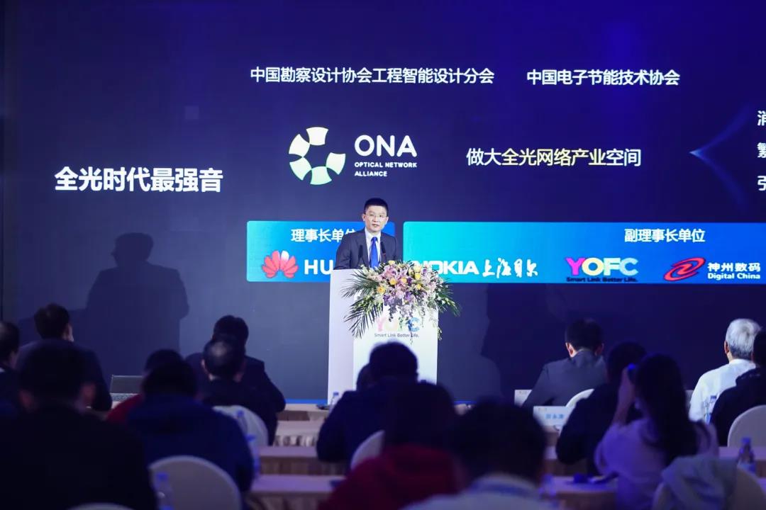 綠色全光網(wǎng)絡(luò)技術(shù)聯(lián)盟理事長(zhǎng)、華為傳送與接入產(chǎn)品線企業(yè)領(lǐng)域副總裁陳澤宇作《擁抱F5G 加速新基建》主題演講: