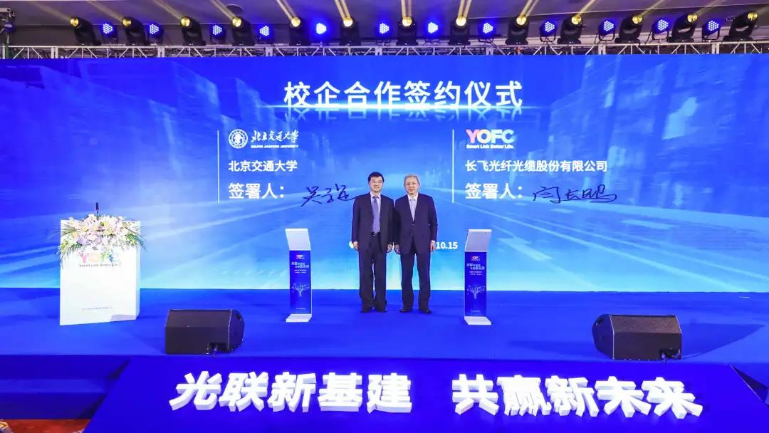 長(zhǎng)飛公司在光通信領(lǐng)域持續(xù)創(chuàng)新,將掌握核心技術(shù)當(dāng)作企業(yè)發(fā)展的基石,高度重視與國(guó)內(nèi)外知名高等學(xué)府進(jìn)行深入合作,開展高水平的應(yīng)用基礎(chǔ)研究、核心關(guān)鍵技術(shù)和共性技術(shù)研究,不斷提升技術(shù)創(chuàng)新能力。為進(jìn)一步探索校企合作模式,使校企深度融合,實(shí)現(xiàn)雙贏,此次發(fā)布會(huì),長(zhǎng)飛公司與北京交通大學(xué)共同簽署合作協(xié)議,為后續(xù)雙方在多芯少模光纖等領(lǐng)域繼續(xù)展開深入合作打下堅(jiān)實(shí)的基礎(chǔ)。