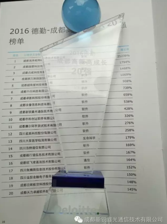 喜訊 | 新銳鑫光通信榮獲“成都20強(qiáng)”