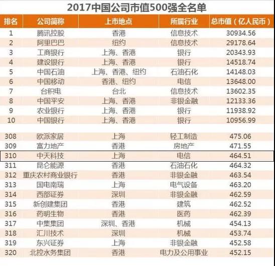 ICCSZ訊 日前,國內(nèi)權威財經(jīng)媒體21數(shù)據(jù)新聞實驗室發(fā)布了2017中國上市公司市值500強榜單,中天科技憑借穩(wěn)健的經(jīng)營發(fā)展和市值表現(xiàn),在全球上市的6000多家中國公司中脫穎而出,以市值464.51億元排名榜單第310位。
