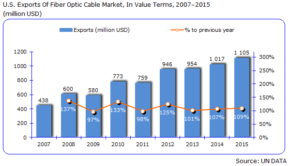 ICCSZ訊 國(guó)外市場(chǎng)研究機(jī)構(gòu)IndexBox Marketing日前發(fā)布報(bào)告稱,2007-2015年,美國(guó)光纖電纜市場(chǎng)迎來穩(wěn)定增長(zhǎng),期間年平均增速達(dá)到12.2%。