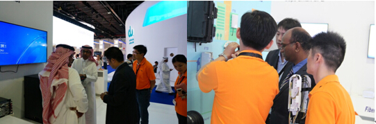 中東市場(chǎng)是全球發(fā)展最快的信息技術(shù)新興市場(chǎng),其中,迪拜正在著力打造的“智慧城市”為網(wǎng)絡(luò)基礎(chǔ)設(shè)施、云計(jì)算、智慧應(yīng)用帶來(lái)新一輪發(fā)展機(jī)遇。今年,烽火科技進(jìn)一步強(qiáng)化目標(biāo)市場(chǎng)聚焦和產(chǎn)品匹配聚焦,將與寬帶接入有關(guān)的解決方案進(jìn)行大方案整合,以FTTxTurnkey的方式端到端展示了在超寬帶網(wǎng)絡(luò)、超高清終端方面的解決方案、服務(wù)能力和客戶(hù)案例。同時(shí),在展臺(tái)設(shè)置了SDN和4K超高清業(yè)務(wù)的聯(lián)網(wǎng)演示,吸引著眾多觀(guān)眾駐足觀(guān)看和洽談。