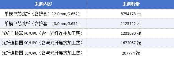 本次項(xiàng)目預(yù)算金額為 601.82萬(wàn)元(不含稅),采購(gòu)內(nèi)容涵蓋單模單芯跳纖及多種類型光纖連接器,具體包括 2.0mm、3.0mm 規(guī)格的 G.652 單模單芯跳纖(含護(hù)套),以及 FC/UPC、SC/UPC、LC/UPC 類型的光纖連接器(含與光纖連接加工費(fèi))。詳細(xì)采購(gòu)內(nèi)容如表所示: