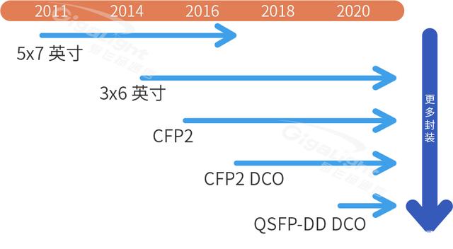 光學(xué)方面的創(chuàng)新導(dǎo)致了需要更低功耗和更小尺寸的組件。這些創(chuàng)新產(chǎn)生了可插拔的CFP2-ACO(模擬相干光學(xué)器件),這是一種尺寸相對(duì)較小的CFP2的可插拔DWDM模塊。DSP技術(shù)也不斷發(fā)展,使一個(gè)DSP芯片可以支持多個(gè)CFP2-ACO模塊。