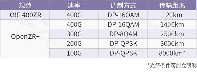 首先是光互聯(lián)網(wǎng)絡(luò)論壇(OIF),它創(chuàng)建了400ZR標(biāo)準(zhǔn)。400ZR的目標(biāo)是邊緣和相對(duì)短距離(120km以內(nèi))數(shù)據(jù)中心互連應(yīng)用。大約在同一時(shí)間,OpenROADM多源協(xié)議也定義了400G DWDM可插拔的規(guī)范,規(guī)范集中在服務(wù)提供商網(wǎng)絡(luò)將需要的內(nèi)容上。例如長(zhǎng)距離光傳輸(>120km),高級(jí)前向糾錯(cuò)(稱為oFEC)和可選數(shù)據(jù)速率(100G、200G、300G或400G)。盡管可以實(shí)現(xiàn)附加功能,但所需功率要比ZR規(guī)定的15W多。因此,OpenROADM的規(guī)范被稱為ZR+。