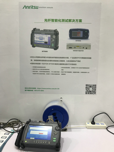 安立公司的便攜式OTDR測試儀在業(yè)界一直是赫赫有名的產(chǎn)品,ACCESS Master OTDR 系列自從2004年推出其第一代產(chǎn)品后在全球銷售了30000多臺。本次展會上展出的就是最新款MT9085系列OTDR提供光纖智能測試方案,支持圖形化的故障自動診斷,支持200Km以上的長途光纜的測試,支持小脈沖,大動態(tài)范圍的測量模式,100ns的脈沖寬度可支持100Km的光纖測試。支持跨1:128的分光器的測試;優(yōu)化實時測試模式,支持超過100Km的光纖熔損耗的實時測試;集成了8英寸的觸摸屏、快捷操作按鍵,方便現(xiàn)場操作人員便捷使用。