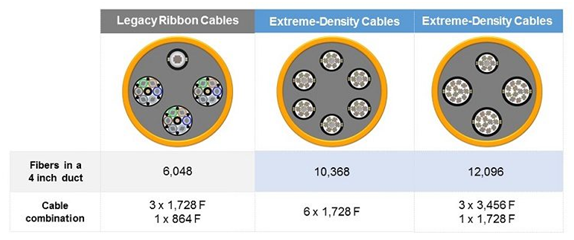 圖5.采用極端密度光纜設(shè)計(jì),使同一管道空間的光纖容量翻倍。