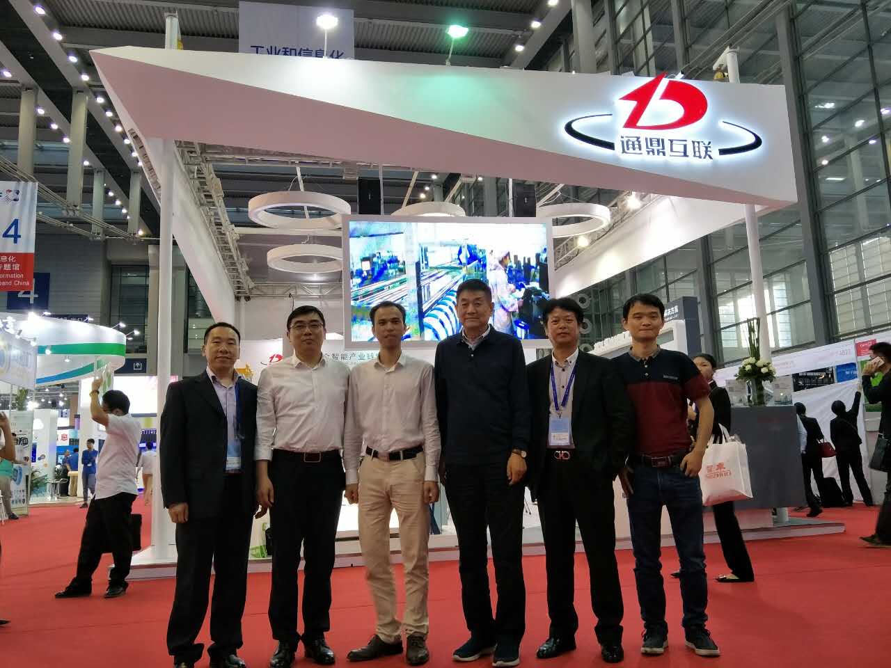 (左起通鼎張海軍、通鼎技術(shù)總監(jiān)李震宇、訊石凌科、通鼎高級顧問慕成斌、通鼎副總裁劉延輝、訊石曾家梁)