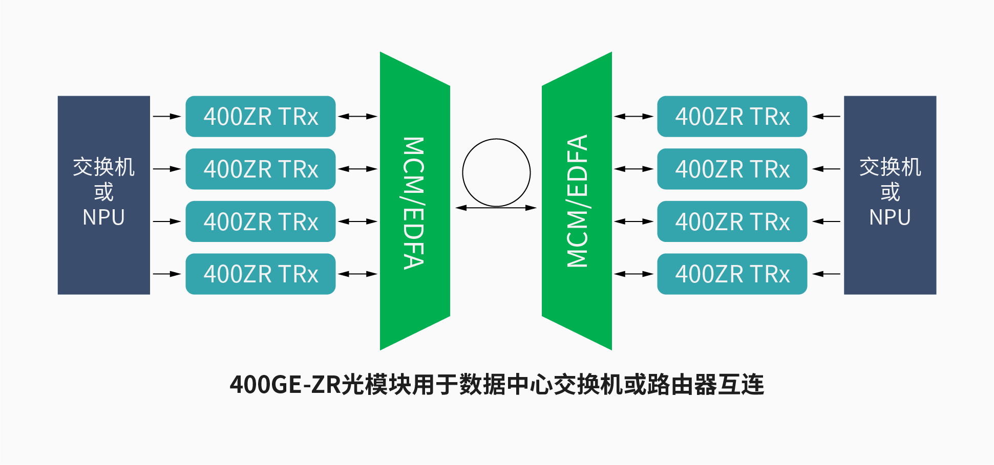 ICC訊 為了應付大規(guī)模云服務和其他不斷增長的數據中心存儲和處理需求,數據中心系統(tǒng)已越來越分散并且難以管理。諸如人工智能(AI)之類的應用迫切需要低延遲,高帶寬的網絡架構,以支持服務器之間生成的大量機器對機器輸入/輸出(I / O)。為了確保這些應用程序的基本性能,必須將這些分布式數據中心之間的最大光纖傳播限制為大約100 km。因此,這些數據中心必須連接在分布式集群中。為了同時確保高帶寬和高密度數據中心的互連,出現了400G ZR。