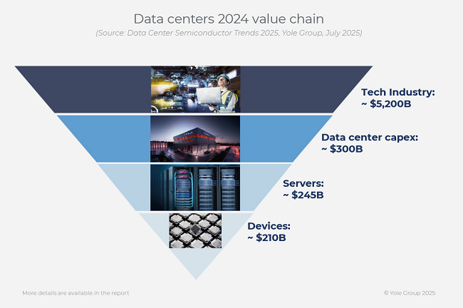 在構(gòu)成上,邏輯半導(dǎo)體將繼續(xù)占據(jù)主導(dǎo)地位,并且由于AI密集型工作負(fù)載日益增加的復(fù)雜性和處理需求,其增長最為迅速。內(nèi)存,尤其是高帶寬內(nèi)存(HBM),是第二大細(xì)分市場,正經(jīng)歷快速增長,以滿足AI和高效能運算(HPC)的高吞吐量需求。光子學(xué)和共封裝光學(xué)(CPO)的擴展——由Nvidia和Broadcom等公司推動——也正在改變服務(wù)器架構(gòu)。僅光子學(xué)領(lǐng)域,預(yù)計到2030年收入將達到數(shù)十億美元。