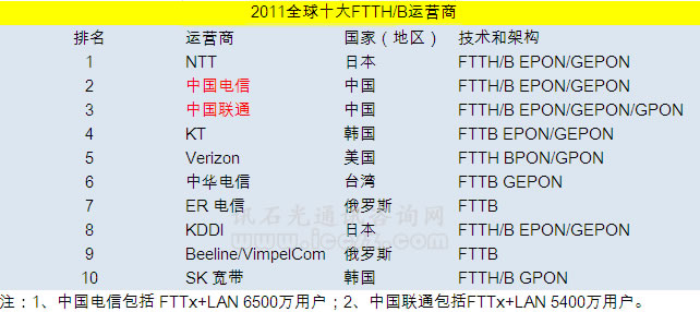 FTTx運(yùn)營商全球排名