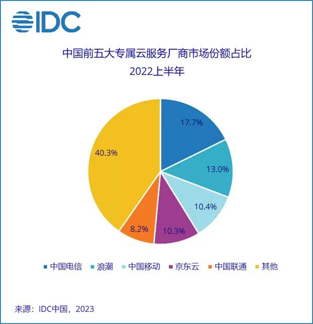 從市場(chǎng)格局來看,IDC指出,2022上半年,專屬云服務(wù)市場(chǎng)格局變化較大,三大運(yùn)營商依托豐富的機(jī)房資源和極具縱深的屬地服務(wù)能力,在該市場(chǎng)中的主導(dǎo)性地位持續(xù)加強(qiáng),三大運(yùn)營商市場(chǎng)份額從2021上半年的30.2%提升至2022上半年的37.0%。其中,中國電信繼續(xù)保持龍頭地位,中國移動(dòng)及中國聯(lián)通加快對(duì)領(lǐng)先服務(wù)商的追趕,市場(chǎng)份額及地位快速提升。