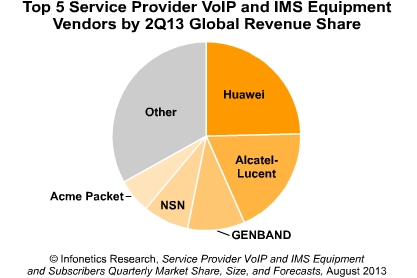 *同時(shí),華為、阿爾卡特朗訊和Genband保持VoIP和IMS市場(chǎng)份額領(lǐng)先。