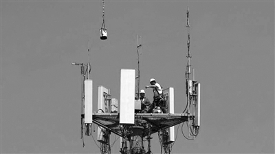 在美國德克薩斯州西布魯克,工人們?cè)赥-mobile信號(hào)塔上安裝5G通信設(shè)備
