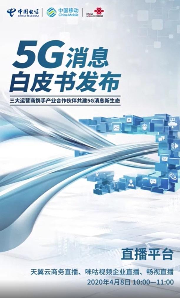 ICC訊 4月4日,中國聯(lián)通、中國移動與中國電信等三大運營商宣布,將于4月8日10:00聯(lián)合發(fā)布5G消息白皮書。