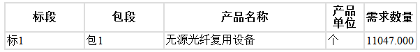 采購無源光纖復(fù)用設(shè)備11047套,具體如下: