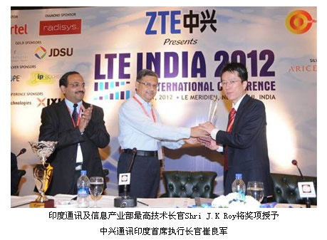 近日,“2012印度LTE 第三次國(guó)際會(huì)議”在新德里成功舉辦。中興通訊獲得由印度通訊及信息產(chǎn)業(yè)部頒發(fā)的“印度第一LTE供應(yīng)商”大獎(jiǎng),以表彰中興通訊印度電信事業(yè)發(fā)展所作出的杰出貢獻(xiàn)。