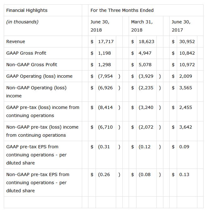 摘要:日前,Emcore公司(納斯達(dá)克:EMKR),為高速通信網(wǎng)絡(luò)基礎(chǔ)設(shè)施和尖端防御系統(tǒng)提供先進(jìn)混合信號光學(xué)產(chǎn)品的領(lǐng)先供應(yīng)商,公布了其截至2018年6月30日的未經(jīng)審計(jì)的第三財(cái)季初步財(cái)務(wù)業(yè)績。2018財(cái)年第三季度銷售收入為1,770萬美元,較上一季度減少4.9%。GAAP毛利率為6.8%,較上一季度的毛利率26.6%大幅下降。非GAAP毛利率為7.3%,上一季度為27.3%。