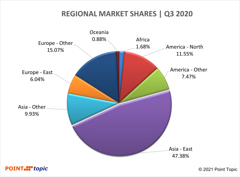 Figure 4. Share of fixed broadband subscribers by region. Source – Point Topic.