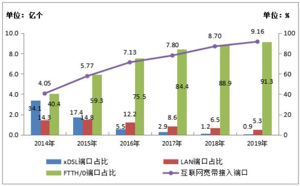 2014-2019年互聯(lián)網(wǎng)寬帶接入端口發(fā)展情況